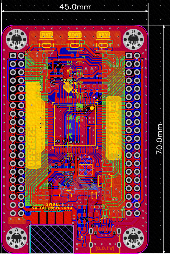 - 尺寸:45mm x 70mm,兼容立创开发板的尺寸,实现开发板叠叠乐;